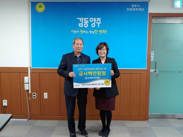 양주시 희망장학재단은 지난 6일 사단법인 경기도여성단체협의회 양주시지회 관계자들이 장학기금 4백만원을 기부했다고 밝혔다.