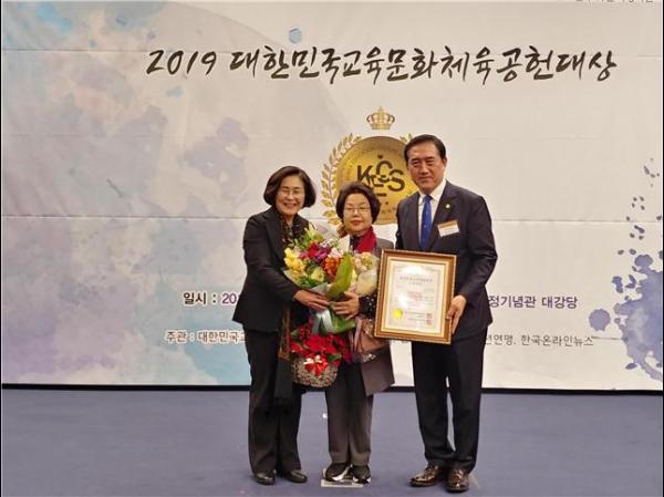 서울시의회 김춘례 의원은 지난 6일 여의도 국회 헌정기념관에서 열린 ‘2019 대한민국교육문화체육공헌대상’에서 의정부문 본상을 수상했다.