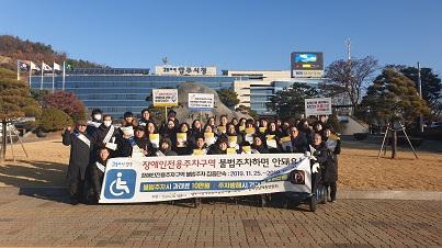 양주시는 지난 5일 양주시청 앞 사거리 인근에서 공무원, 장애인단체회원 등 40여명이 참석한 가운데 장애인전용주차구역 인식개선 캠페인을 실시했다.