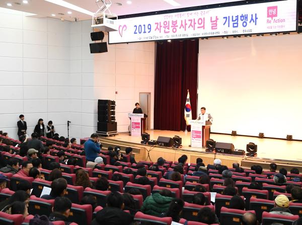 광주시자원봉사센터는 지난 7일 자원봉사자의 날을 기념해 시청 대회의실에서 ‘오직광주, 시민과 함께하는 자원봉사’라는 주제로 ‘2019 자원봉사자의 날 기념행사’를 개최했다.