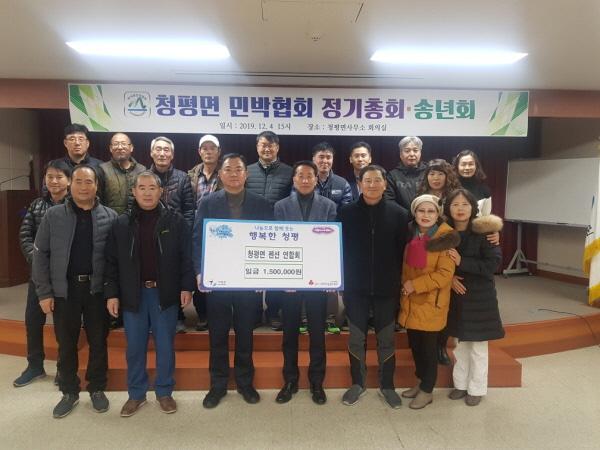 가평군 청평면 펜션 연협회는 최근 청평면사무소 회의실에서 정기총회 및 송년회를 가지면서 청평면에 이웃돕기 성금 150만원을 기탁했다고 9일 밝혔다.