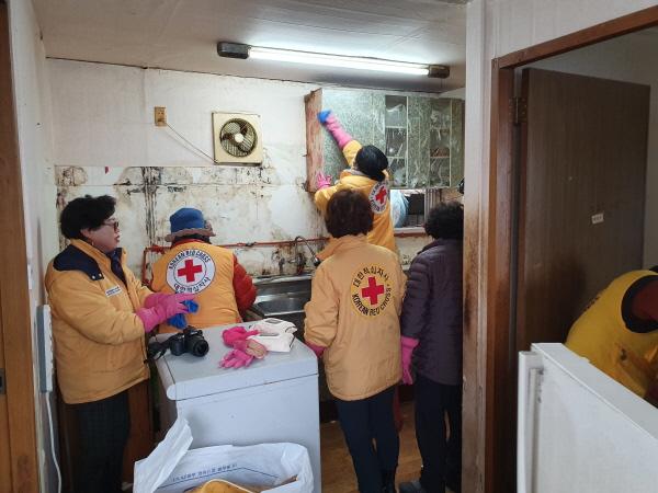 포천시 64년동문회와 선단사랑봉사회 20여명의 자원봉사자는 도배를 하고 장판을 교체했으며 집안 구석구석 깨끗하게 쓸고 닦았다.
