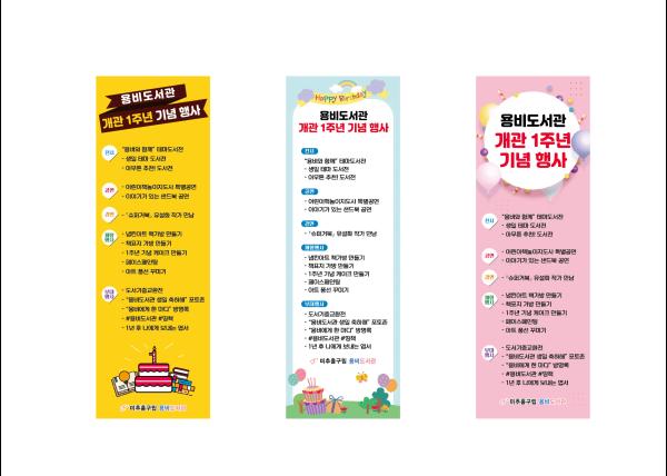 ‘용비도서관 생일 축하해’ 포토존과 ‘용비에게 한 마디’ 방명록, SNS를 이용한 #용비도서관 #띵책, 1년 후 나에게 보내는 엽서 행사는 많은 이용자들이 참여할 것으로 기대된다.