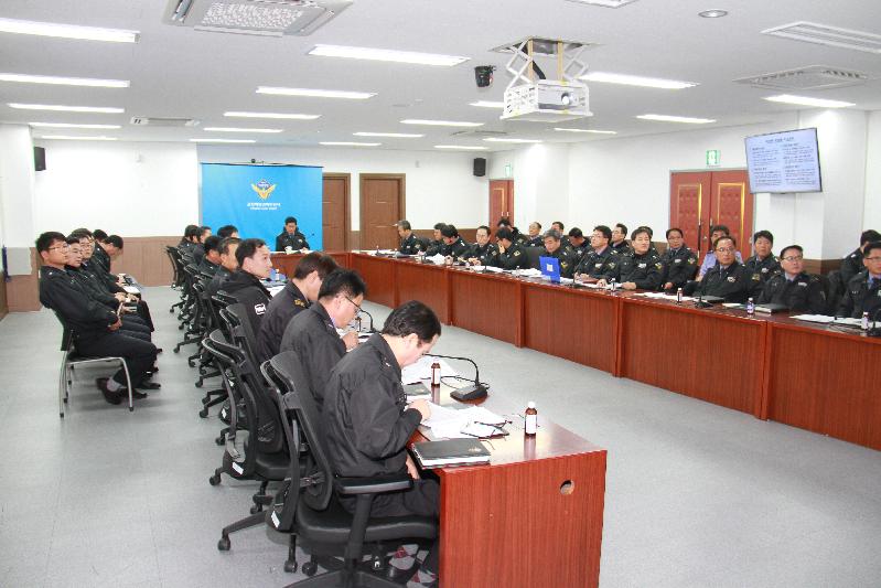 | 포항 해경이 2017년도 주요업무 보고회를 개최하고 있다.<미디어 타임즈> |