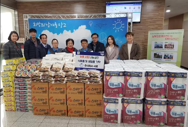 남양주시 남부희망케어센터는 지난 5일 사회적기업인 서로와 ‘이웃사랑 나눔실천 식료품 및 생필품 전달식’을 가졌다.