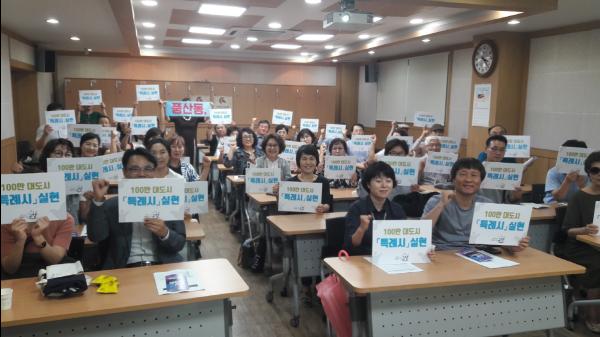 특례시란 현행 기초자치단체의 지위를 유지하면서 커진 덩치에 맞게 행정·재정적 자치권한을 부여받는 지방자치단체를 말하는데, 시 담당부서에서 이런 특례시에 대해 지역주민들의 공감대를 확산하고 나아가 자치분권의 조기정착을 앞당기고자 순회교육을 기획했다.