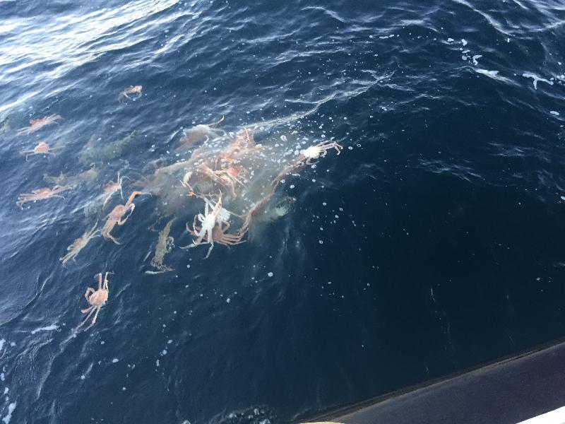 | 체장미달 게를 방류하고 있다.<미디어 타임즈> |