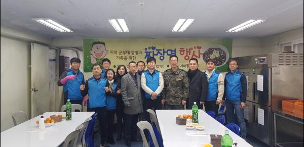 이날 행사는 세마동 체육회 이사 12명이 참석해 168연대 3대대 장병들과 가족초청행사에 맞춰 방문한 장병 가족들에게 정성스레 준비한 250명분의 짜장면을 대접해 쌀쌀한 겨울철 훈훈한 나눔을 실천하는 자리가 됐다.