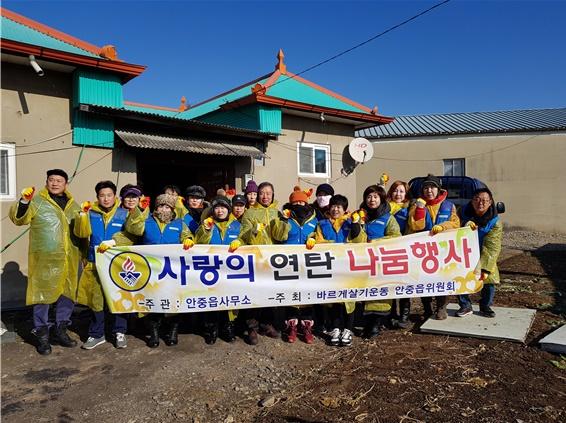 평택시 안중읍 바르게살기위원회는 지난 6일 겨울철 난방 취약가구를 대상으로 사랑의 연탄나눔 행사를 진행했다.