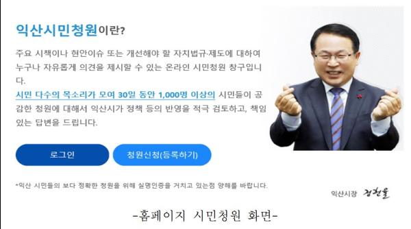 익산시가 시정에 대한 시민들의 의견을 수렴하기 위해 시행하고 있는 온라인 시민청원제의 접근성을 높일 수 있도록 문턱을 대폭 낮췄다.