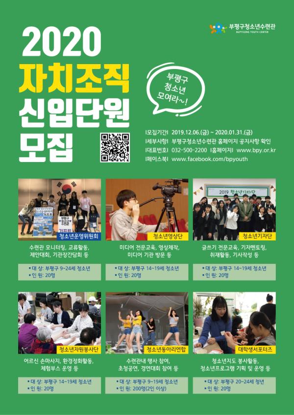 부평구청소년수련관이 2020년 자치조직을 이끌어 나갈 지역 내 청소년을 내년 1월 31일까지 모집한다.