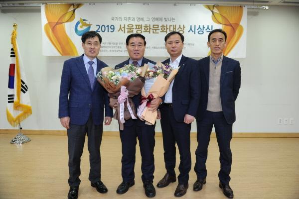 수원시의회 이재식 의원이 지난 6일 국회의원회관 제2소회의실에서 열린 ‘2019 서울평화문화대상 시상식’에서 자치의정 문화복지 대상 수상의 영광을 안았다.