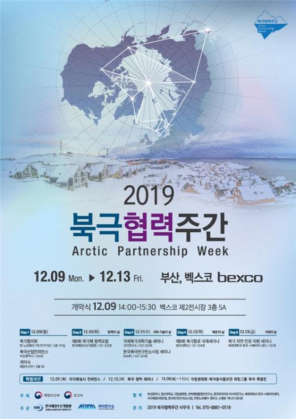 해양수산부와 외교부는 9일부터 오는 13일까지 부산 벡스코 제2전시장에서 ‘2019 북극협력주간’을 개최한다.