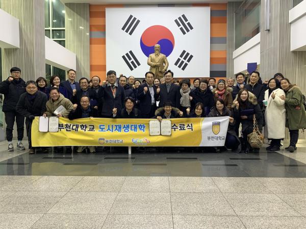 부천시는 지난 5일 부천대학교에서 제6기 주택·도시분야 도시재생대학 수료식을 개최했다. 교육은 도시재생의 이해 및 주민역량 강화를 목적으로 지난 9월부터 12월까지 주 1회씩 12주 과정으로 진행했으며 40명의 수료생을 배출했다.