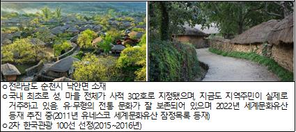 낙안읍성, 빛의 벙커, 엑소 등 7개 관광자원 선정
