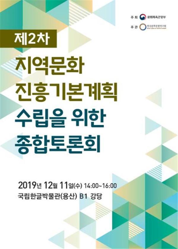 문화체육관광부는 오는 11일 오후 2시, 국립한글박물관 강당에서 ‘제2차 지역문화진흥기본계획 수립을 위한 종합토론회’를 개최한다.