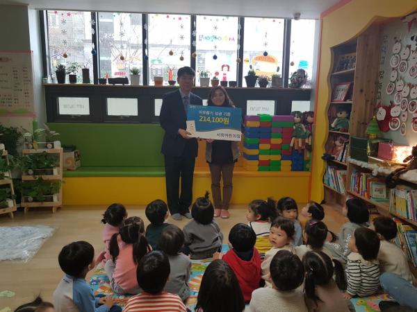 이날 기탁한 성금은 어린이집 교사와 어린이들이 지난 7월 바자회를 통해 얻은 수익금으로 마련했다.