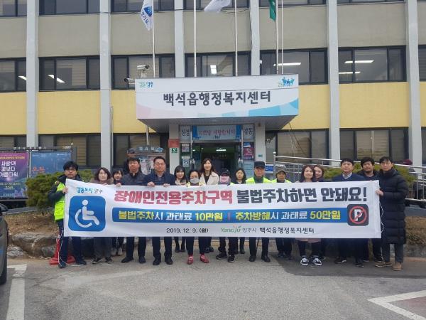양주시 백석읍은 지난 9일 백석읍행정복지센터와 복지사거리 일대에서 공무원, 장애인전용주차구역 계도요원 등 20여명이 참석한 가운데 장애인전용주차구역 인식개선 캠페인을 실시했다.