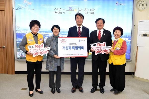 하남시는 10일 시장 집무실에서 2020년도 적십자 특별회비 100만원을 대한적십자사 경기지사에 전달했다.
