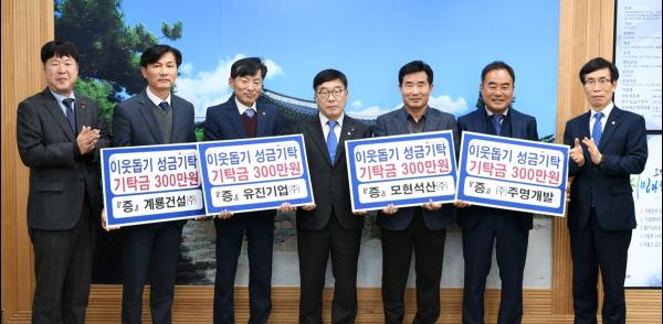 모현석산㈜, 유진기업㈜, 계룡건설㈜, ㈜주명개발은 지난 9일 광주시를 방문해 어려운 이웃에게 전해 달라며 각각 이웃돕기 성금 300만원을 기탁했다.