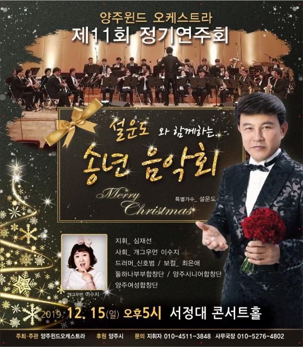 양주시는 오는 15일 서정대 콘서트홀에서 양주 윈드오케스트라 주관, 양주시민들을 위한 ‘송년음악회’를 개최한다고 밝혔다.