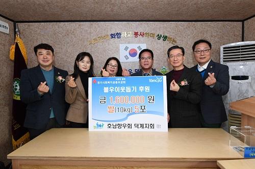 양주시 호남향우회 덕계지회는 지난 8일 연말연시를 맞아 관내소외계층을 위해 이웃돕기성금 160만원과 백미 10kg 5포를 회천2동에 기부했다.
