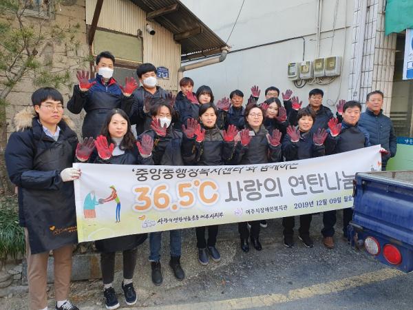 연말을 맞아 중앙동행정복지센터에서는 사랑의 연탄 나눔 운동 여주시지부와 여주시 장애인복지관에서 주관하는 연탄 나눔 봉사에 참여해 훈훈한 사랑의 마음을 전했다.