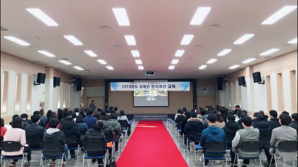구는 지난 6일 월디관 대회의실에서 전직원을 대상으로 장애인에 대한 차별 및 인권침해 예방을 위한 2019년도 장애인 인식개선 교육을 실시했다고 밝혔다.