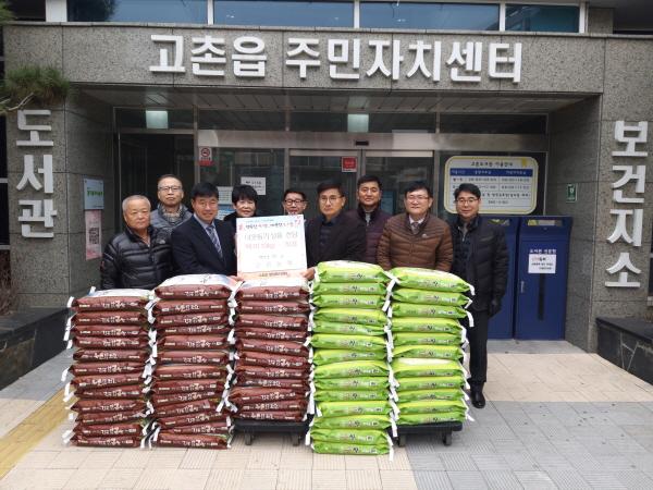 고촌농협이 지난 9일 이웃돕기 성품으로 김포쌀 70포를 고촌읍행정복지센터에 기탁했다.