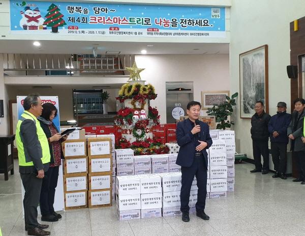 남양주시 와부조안행정복지센터는 지난 5일 센터 1층 로비에서 이색적인 ‘생필품 나눔트리’ 점등식을 갖고 후원금과 물품을 전달받았다.