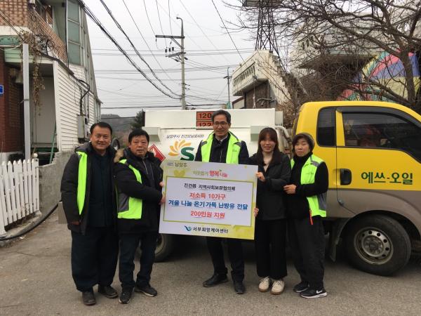 남양주시 진건읍 지역사회보장협의체와 서부희망케어센터는 지난 9일 난방유을 난방취약계층 10가구에 전달했다.