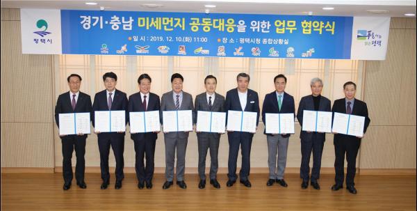 평택시는 10일 시청 종합상황실에서 경기 남부권 미세먼지 협의체 지자체인 평택시·화성시·이천시·오산시·안성시·여주시와 충남 환황해권 행정협의체 6개 지자체인 당진시·보령시·서산시·서천군· 홍성군·태안군 6개 지자체가 ‘경기 남부권 ? 충남 환황해권 미세먼지 공동협의체 협약’을 맺고 미세먼지 문제에 공동 대응할 것을 다짐했다고 밝혔다.
