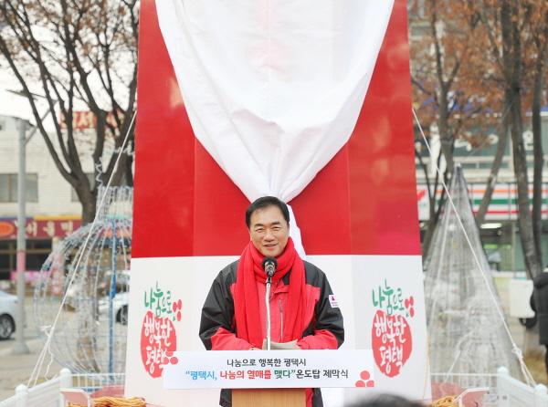 올해 평택시 모금 목표액은 7억원이며 목표액의 1퍼센트인 7백만원의 성금이 모금될 때마다 사랑의 온도탑 온도가 1도씩 올라가게 된다. 이 날 행사에는 캠페인의 공식적인 출범을 알리는 사랑의 온도탑 제막식과 100도 달성을 기원하는 카드섹션 퍼포먼스를 펼치는 등 다양한 행사가 진행 됐다.
