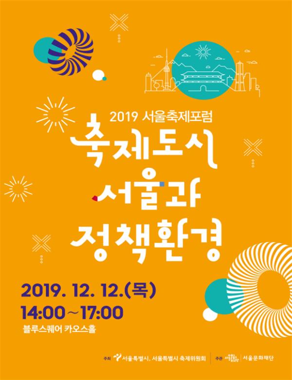서울시와 ‘서울시 축제위원회’가 주최하고 서울문화재단이 주관하는 ‘2019 서울축제포럼’이 12월 12일 오후 2시~5시, 블루스퀘어 카오스홀에서 개최된다. 이번 포럼은 ‘축제도시 서울과 정책환경’을 주제로 진행되며 서울시와 자치구 관계자, 축제 전문가, 시민 등 다양한 참가자들이 함께 서울시 축제 정책에 대해 의견을 나누는 자리가 될 예정이다.