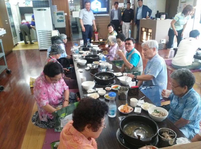 폭염주의보가 내린 지난 18일 황제오리(대표 최동경)에서는 심곡3동 행복잔치를 열어 심곡 3동 홀몸어르신 20명에게 한방삼계탕을 대접했다.