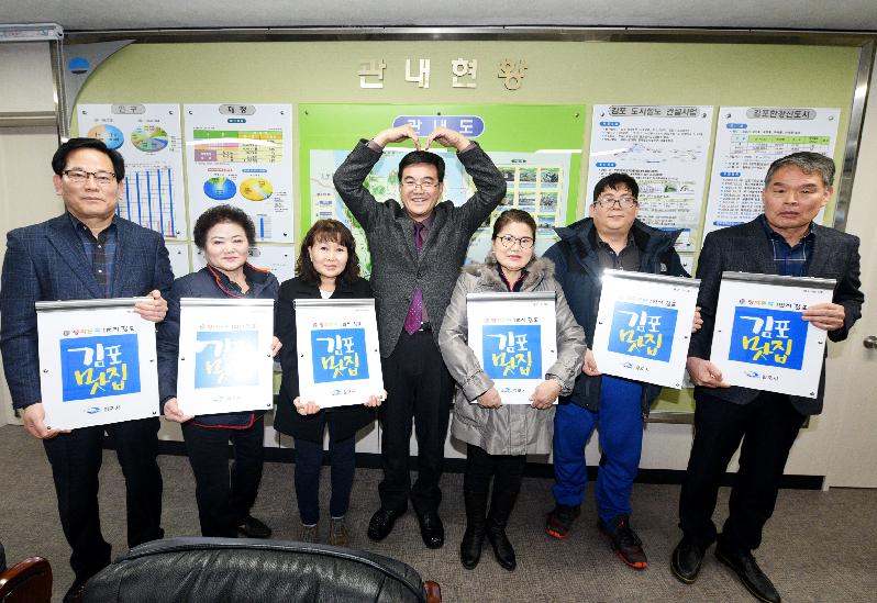 시는 심사결과 최종 6곳을 선정하고 지난 12일 대상 업소에 맛 집 지정서와 LED 표지판을 수여하며 김포 맛 집 운영에 관한 간담회를 진행했다.