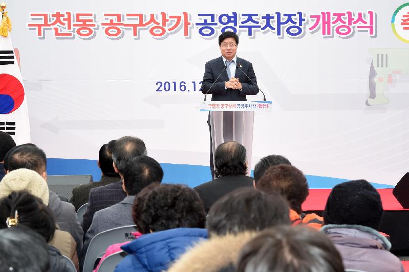 | 13일 염태영 수원시장이 구천동 공구상가 공영주차장 준공식에서 인사말을 하고 있다. <ⓒ미디어타임즈> |