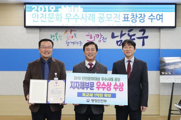 인천 남동구가 행정안전부에서 개최한 ‘2019 안전문화대상 우수사례 공모전’에서 우수상을 수상해 특별교부세 1억원을 확보하게 됐다.