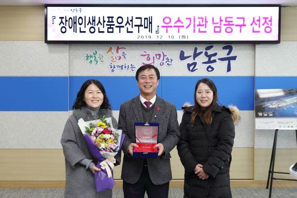 인천 남동구가 2019년 중증장애인생산품 우선구매 유공기관으로 선정돼 우수기관 표창을 수상했다.