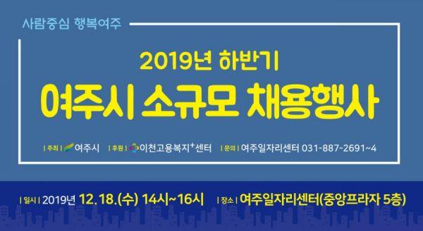 여주시가 오는 18일 오후 2시부터 4시까지 여주일자리센터 5층에서 구직자의 실업문제 해소 및 기업의 우수인재 채용을 위해 ‘2019년 하반기 여주시 소규모 채용행사’를 개최한다.