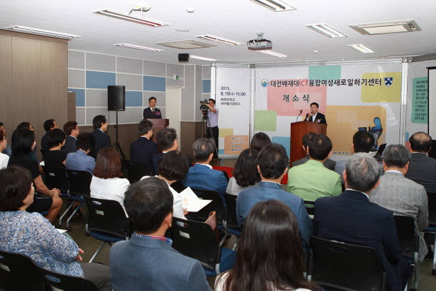대전시(시장 권선택)는 19일 오후 3시 배재대학교 대덕밸리캠퍼스에서 ICT(정보통신기술)융합분야 경력개발여성 취업을 지원하기 위한‘대전 배재대 ICT융합 여성새로일하기센터’의 개소식을 가졌다.