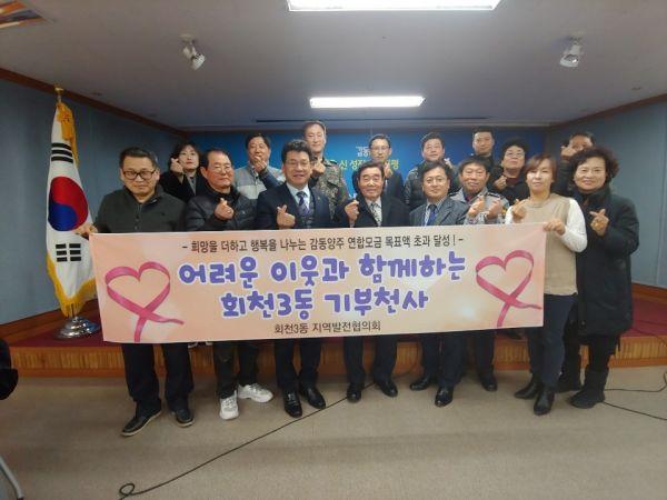 양주시 회천3동 지역사회보장협의체는 어려운 이웃에게 희망을 주고 복지사각지대에 있는 이웃을 돌보기 위한 이웃돕기 연합모금이 기존 목표액을 초과 달성하는 성과를 거뒀다고 밝혔다.