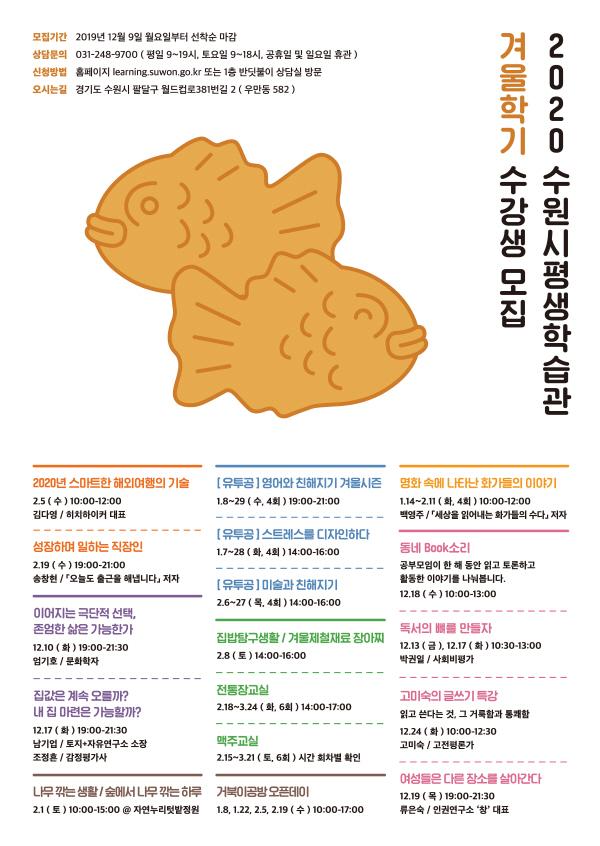[16-20191212084453.jpg] 수원시평생학습관이 2020년 겨울 학기 프로그램 수강생을 모집한다.