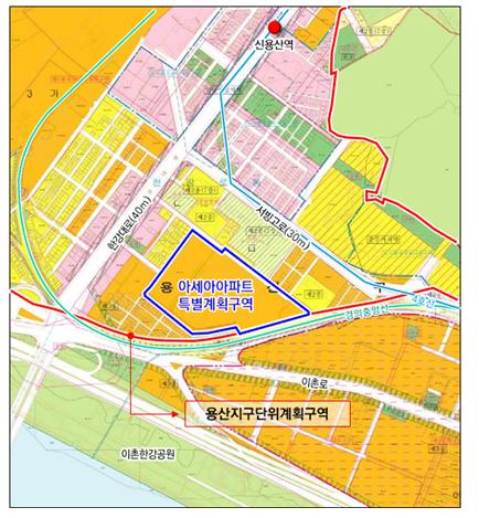 대상지는 용산역과 신용산역 인근에 위치하고 한강대로 이면에 인접해 교통이 편리한 지역이며 종전 군인아파트 등 군부대 용지로 사용해왔던 곳으로 2001년 아세아아파트 특별계획구역으로 결정됐다.