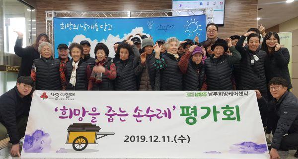 남양주시 남부희망케어센터에서는 지난 11일 지역 내 저소득 폐지수거 어르신 19명과 함께 ‘희망을 줍는 손수레’평가회를 개최했다.