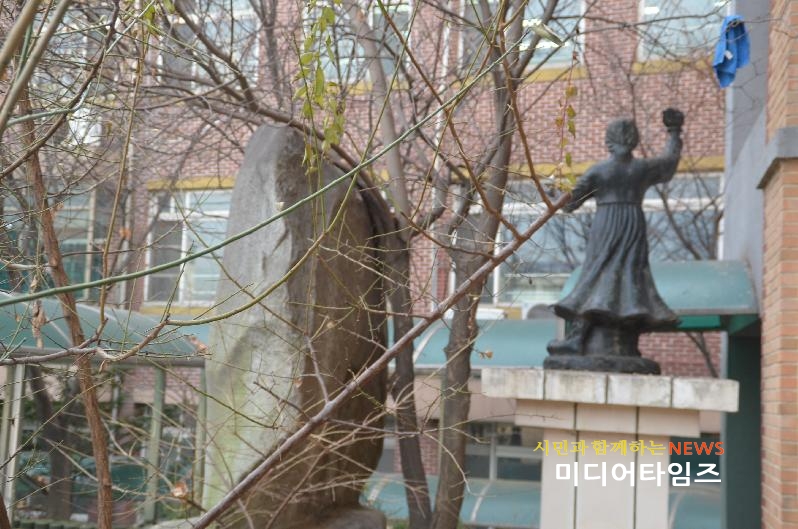 | 광명시 소재 ‘M 고등학교’ 교내에 방치된 독립운동가 류관순 열사 동상. <사진/ⓒ미디어타임즈> |