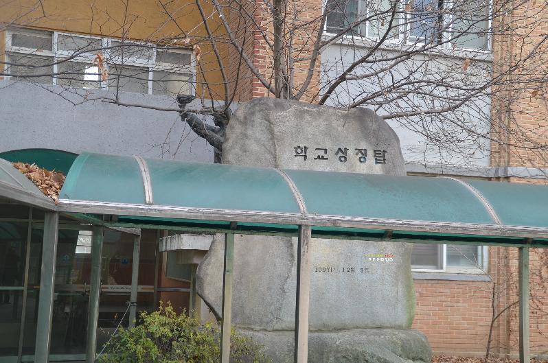 1979년 2월 제1회 졸업식 1년 전 즈음인 1978년 5월 8일 ‘임영식, 고영즉 씨’의 기증으로 세워진 이 동상의 현재 위치는 1997년경에 세워진 학교 상징 탑과 차광막, 울창한 나무 그리고 학교 건물 사이에 방치되어 있는데 관리가 제대로 되지 않아 곳곳에 칠이 벗겨져 있는가 하면 동상을 어떤 위치에서 살펴보아도 조형물의 형태가 무슨 동상인지 조차 구분이 안 된다.