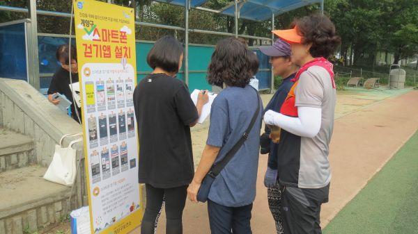 ‘모바일 걷기배틀’은 모바일 어플리케이션을 이용해 일상생활 속에서 주민들이 걷기 운동에 재미를 느낄 수 있도록 걸음 수에 따라 다양한 쿠폰 혜택을 제공해 2016년부터 약 3,000여명이 가입해 참여하고 있다.