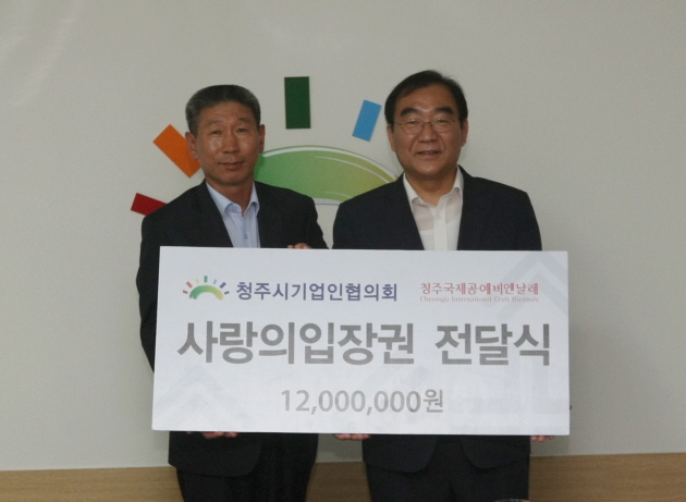 청주시기업인협의회(회장 차태환)는 18일 오후 5시 청주시 첨단문화산업단지 사무실에서 청주국제공예비엔날레 사랑의 입장권 4,000매(1,200만 원 상당)를 청주시에 전달했다.