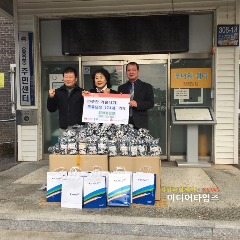 [미디어타임즈=문상수 기자] 인천 중구 운서동에 위치한 경정훈련원(원장 이진형)은 지난 14일 동절기 방한용품 무릎담요 174개를 용유동 지역사회보장협의체(위원장 한만분)에 기탁했다.지난 11월 사랑의 김장 나눔 행사를 하고, 지역사회를 위해 다양한 사회공헌활동을 하고 있는 경정훈련원 이진형 원장은 “소외되고 어려운 이웃들이 따듯한 동절기를 보내길 바란다”고 전했으며, 이에 지역사회보장협의체 한만분 위원장은 “지역 내 어려운 이웃들에게 따뜻한 담요를 보내주신 경정원 관계자 여러분께 깊은 감사를 드리며 보내주신 따뜻한 마음으로 아동·청소년 및 지역 저소득 주민들이 연말을 보낼 수 있도록 전달해 드리겠다”고 화답했다.이 담요는 관내에 거주하는 저소득층 가구에 통장 및 지역사회보장협의체 위원들이 직접 방문하여 전달할 예정이다.